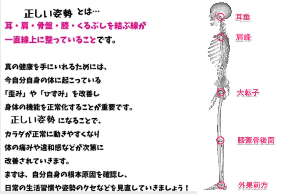 正しい姿勢は側方から観察した時に以下の通りの直線を描く状態のことを言います☺️
