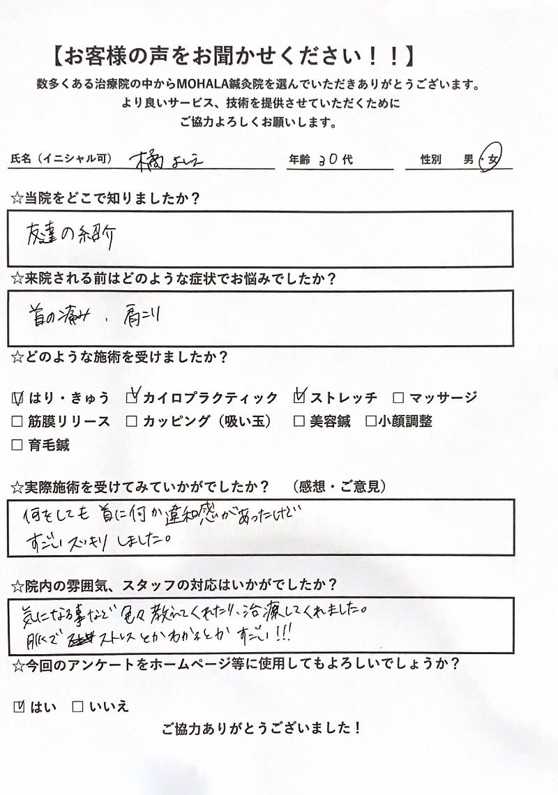 A.何をしても首に何か違和感があったけどすごいすっきりしました。